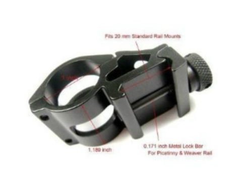 This Offset Tactical Mount is designed specifically for 1 Inch Flashlights and Lasers