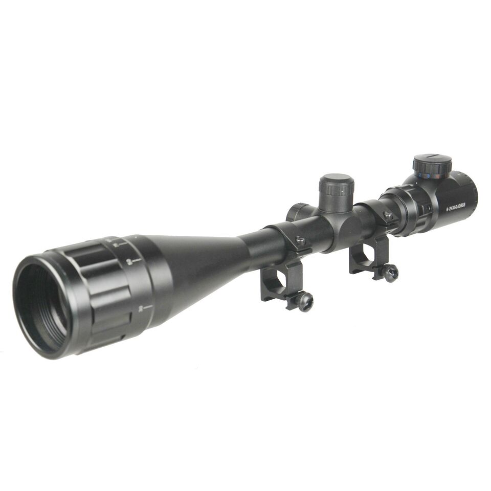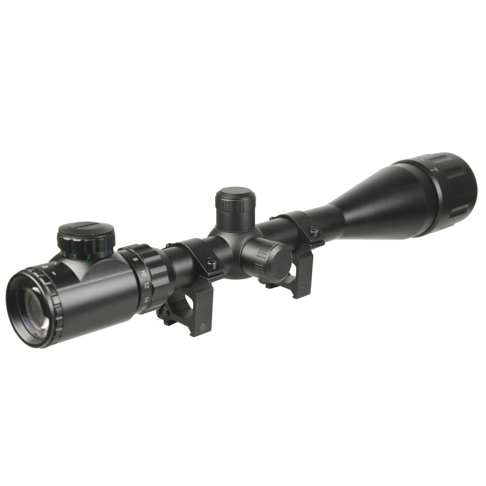 Weight: 23 oz Magnification: 3x-9x Objective Lens Diameter: 0.197″/50mm Brightness Control: Red- 3 levels, Green- 3 levels Exit Pupil: 2.1mm-8.3mm Objective Range: 100 m Eye Relief: 3.0″-4.0” Finish: Black Matte Power: 1 x CR2032 battery (included) Click Value:1/4@ 100yards Inert gas purged, fog, weather, shock proof Scope mounts for 20mm weaver dovetail rail Package includes: 1x 3-9X50 AO Illuminated Rifle Scope 2x Metal mounts 1x Allen wrench 1x CR2032 battery 1x Cleaning Stuff |