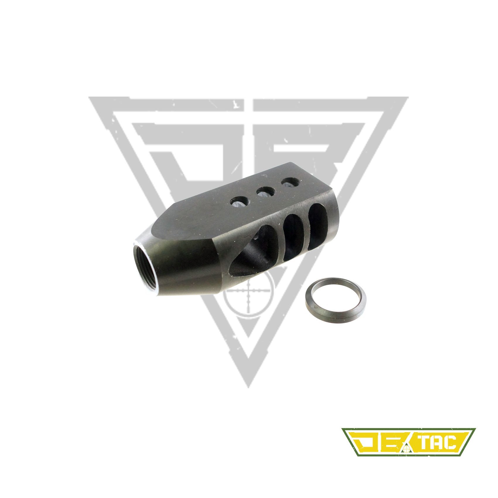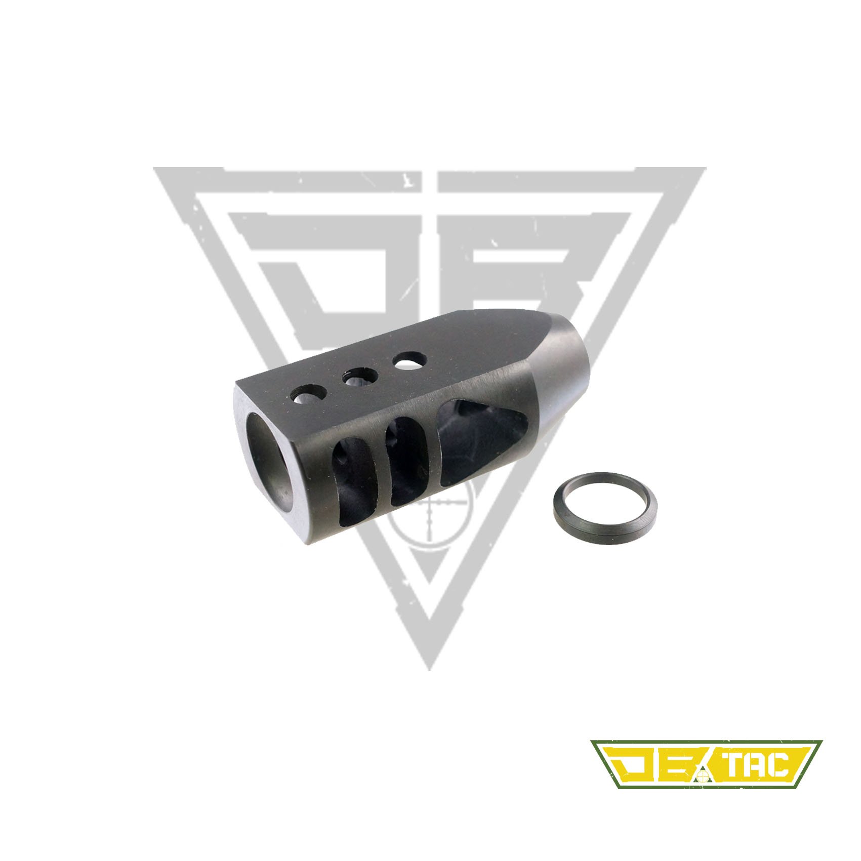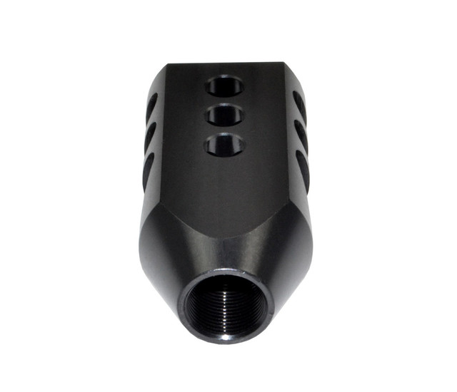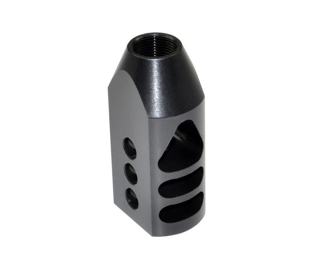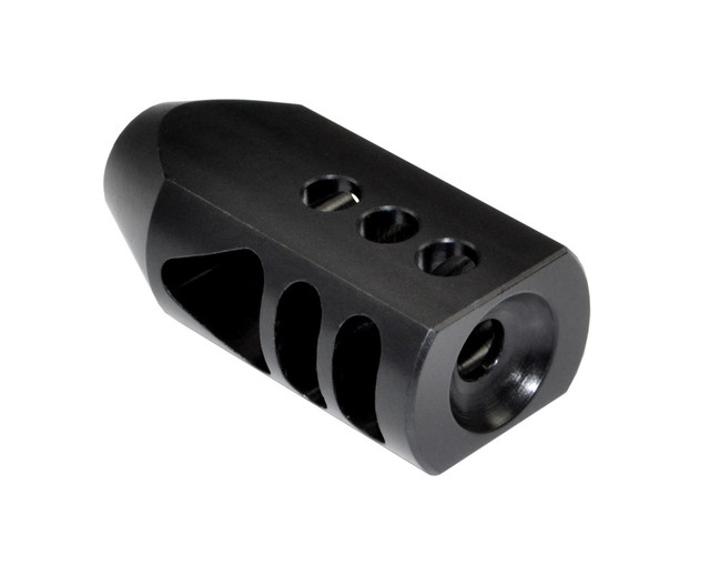 Designed to reduce muzzle rise and improve shooting stability, this compact competition-style muzzle brake enhances control and follow-up shot performance. Precision CNC machined from hardened steel with triangular baffles and multi-port gas redirection for efficient recoil management.