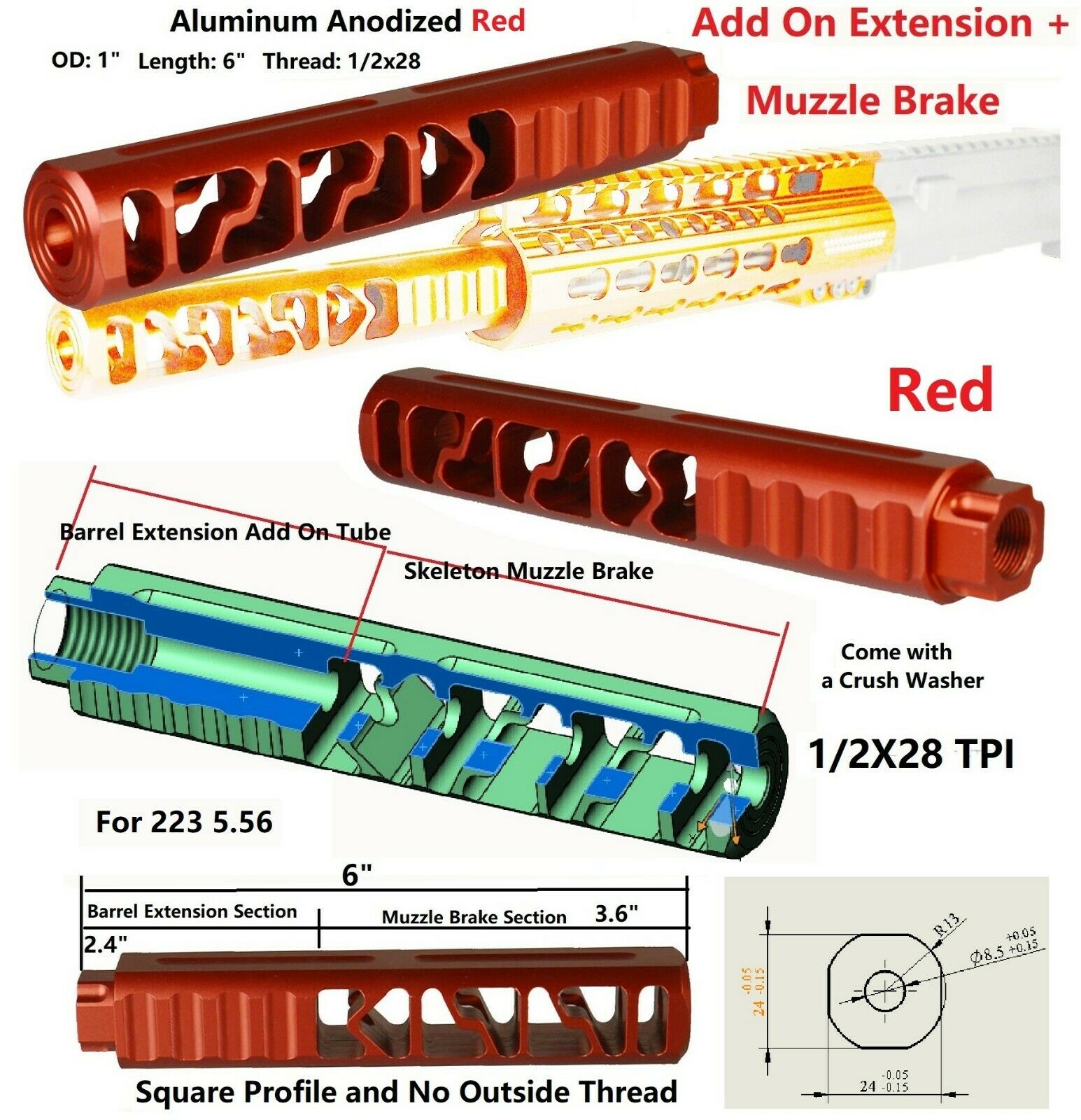 -Muzzle Brake Section : 3.6″