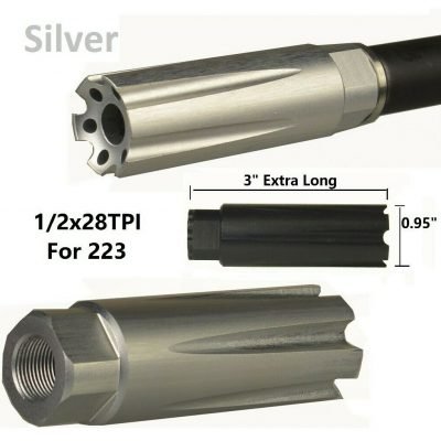 DB TAC 1/2”x28 TPI Thread Low Concussion Muzzle Brake Compensator For .22LR/.223/5.56 Caliber Silver Color