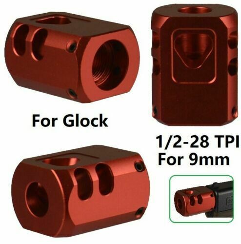 DB TAC 1/2”x28 TPI Thread Muzzle Brake Anodized Red Color for 9mm GLOCK