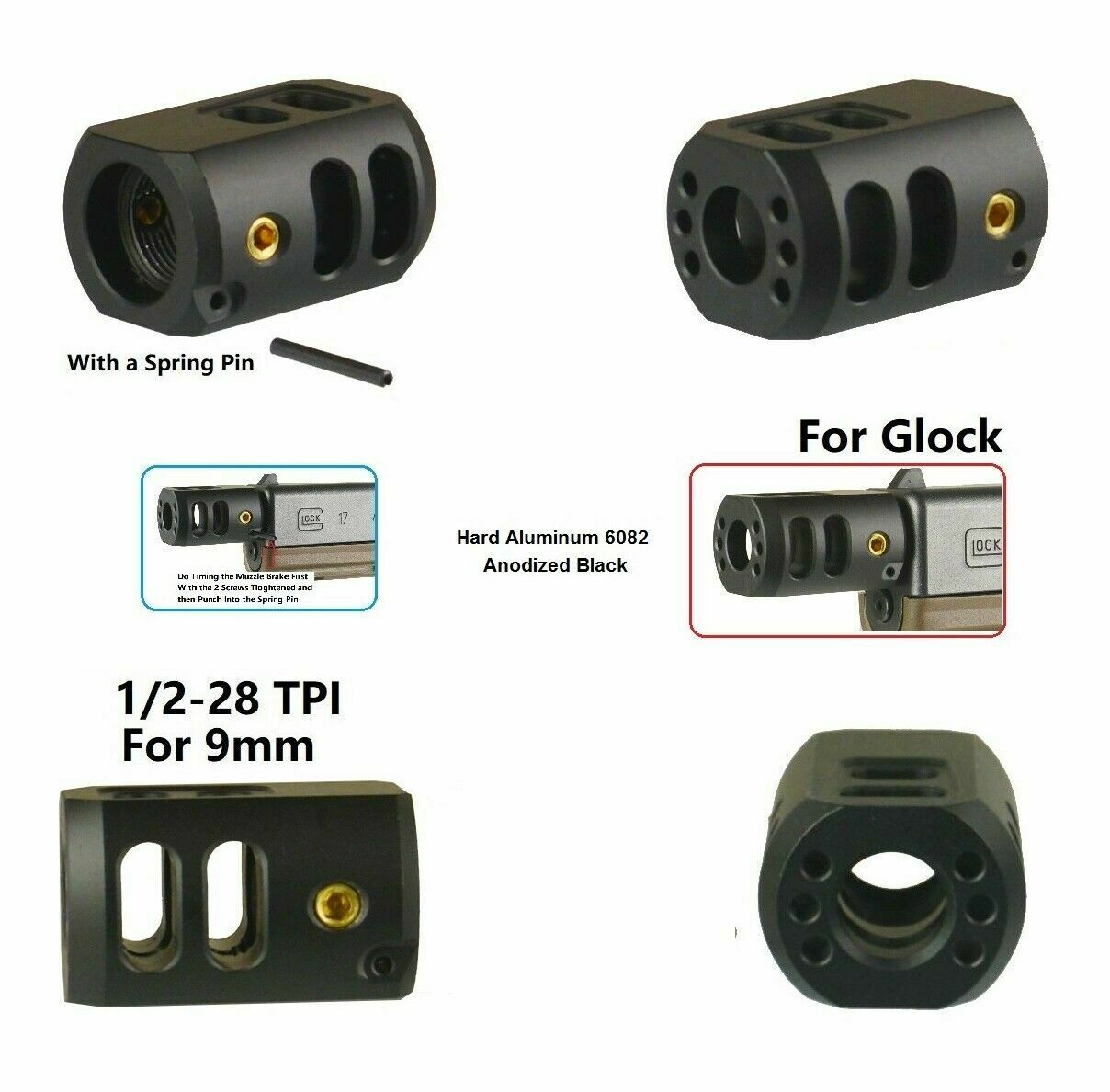 DB TAC Aluminum 1/2×28 TPI Thread Muzzle Brake Compensator Anodized Black Color For 9mm, Compact Design