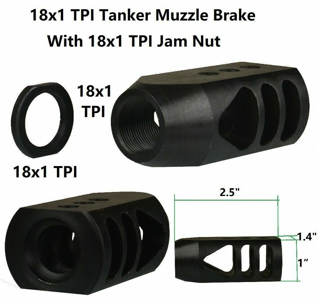 DB TAC 18×1 TPI Thread Steel Compact Competition Tanker Muzzle Brake For .50 or Smaller Caliber With Jam Nut