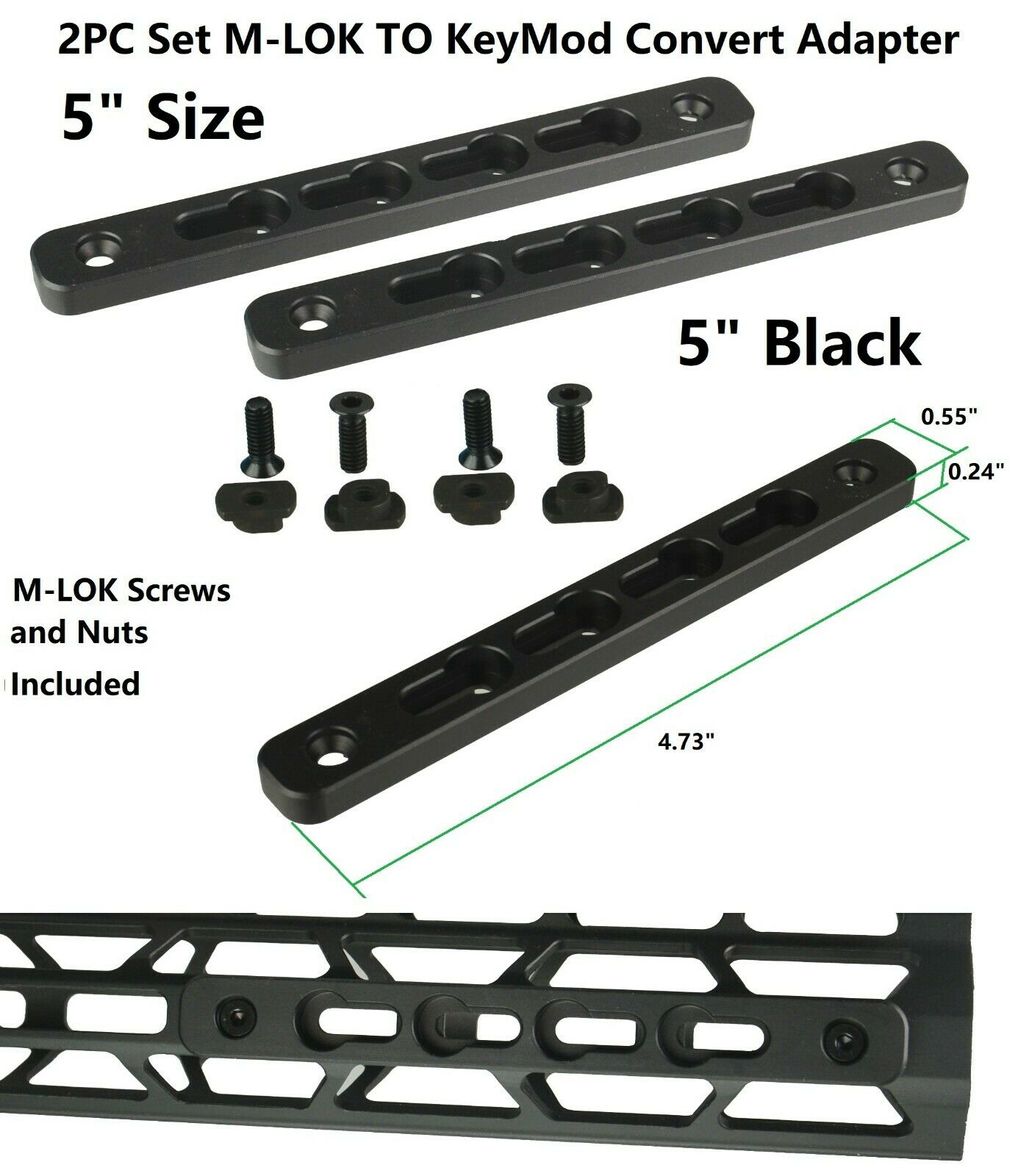 - 2PC Set 5″ Black Anodized M-LOK to KeyMod Rail Section Converter Adapter Mount