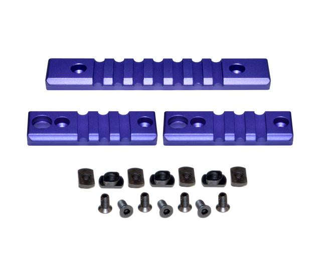 Upgrade your M-LOK handguard with this 3-piece Picatinny rail section kit. Precision-machined from durable A6061-T6 aluminum and finished in matte purple anodization, these rail sections provide extra mounting points for your favorite accessories such as grips, lights, lasers, and bipods.