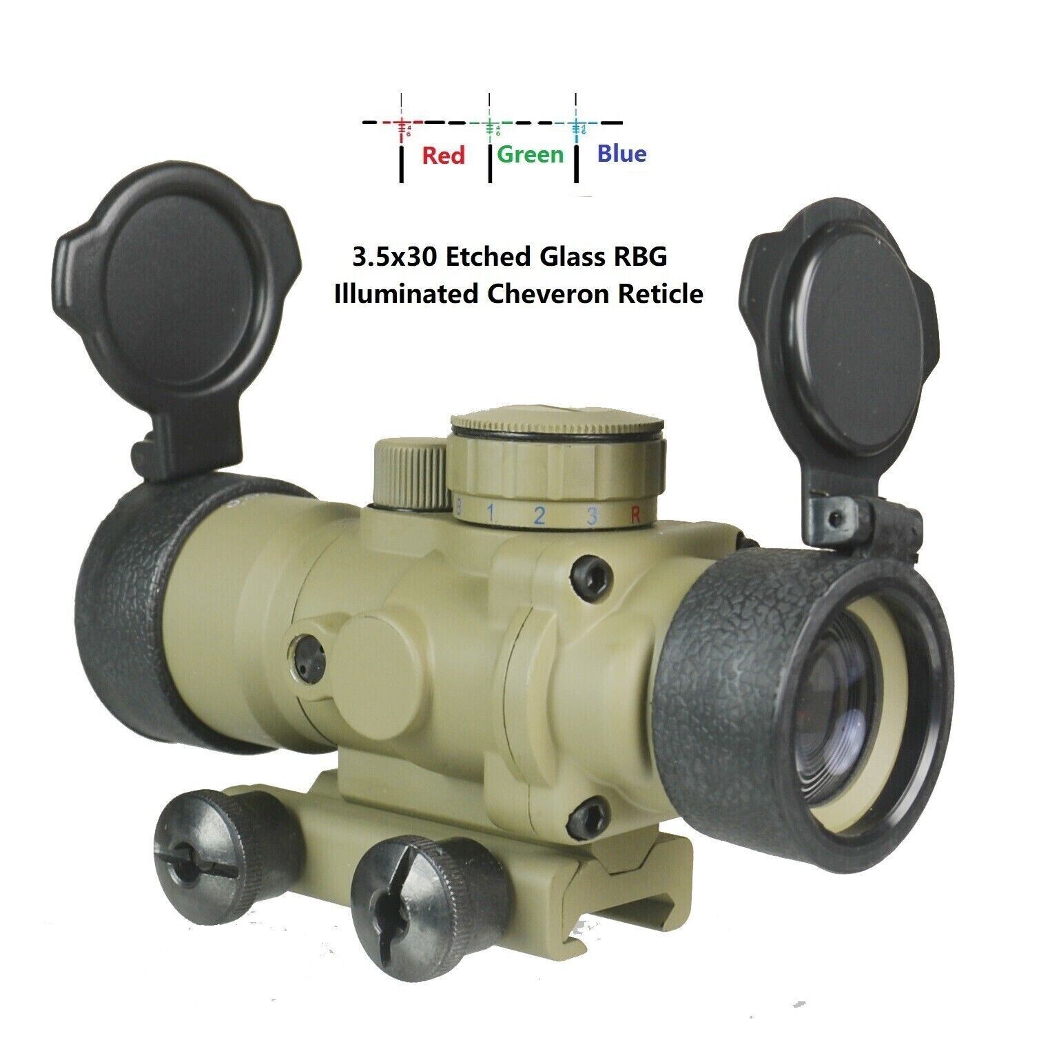 DB TAC 3.5X30 Red/Blue/Green Illuminated Compact Prism Scope Tan Color,Quick Sight Etched Glass