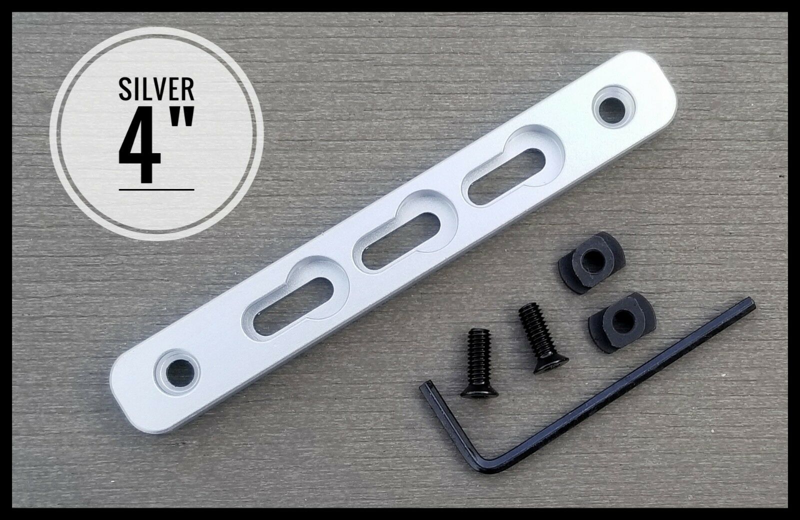 - 4″ Silver M-LOK Convert to KeyMod Section Aluminum