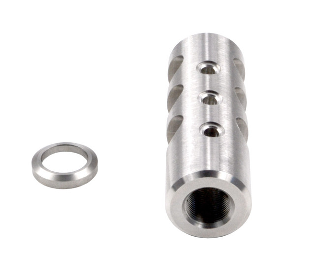 Reduce felt recoil and muzzle rise with this precision-machined Stainless Steel muzzle brake / recoil compensator. CNC-machined from high-quality Stainless Steel and finished in durable silver, it’s built to withstand heavy use while improving follow-up shot speed and shooter comfort. The unit threads on with a standard 5/8×24 TPI and includes a crush washer for secure installation. Compact and lightweight at 4.1 oz, it’s optimized for 6.5 Creedmoor calibers.