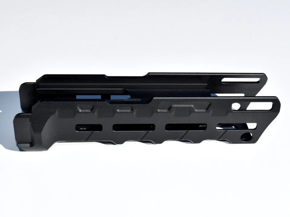 The enhanced textured and ribbed inset area gives you an outstanding hold while the front and rear hand stops improve safety during fast handling. The extended length lets you position your forward hand exactly where you want it. With 8 M-LOK® slots, mount lights, grips, or other accessories quickly and securely.