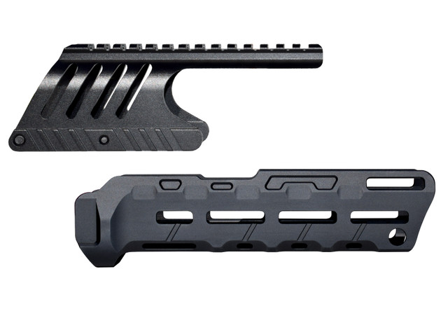 Includes: Forend, low-profile Picatinny rail saddle, mounting screws, hand stops