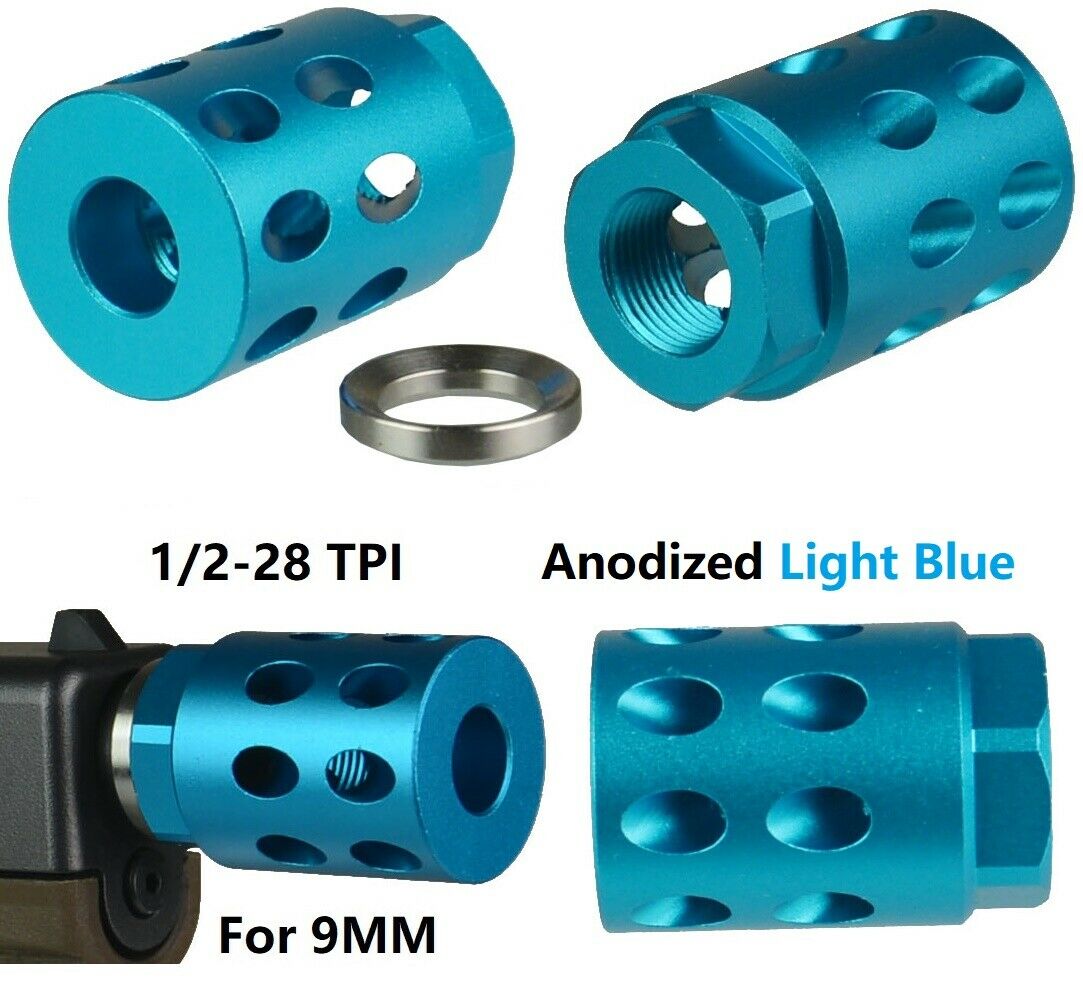 DB TAC Aluminum 1/2”×28 TPI Thread Muzzle Brake Compensator For 9mm Light Blue Color