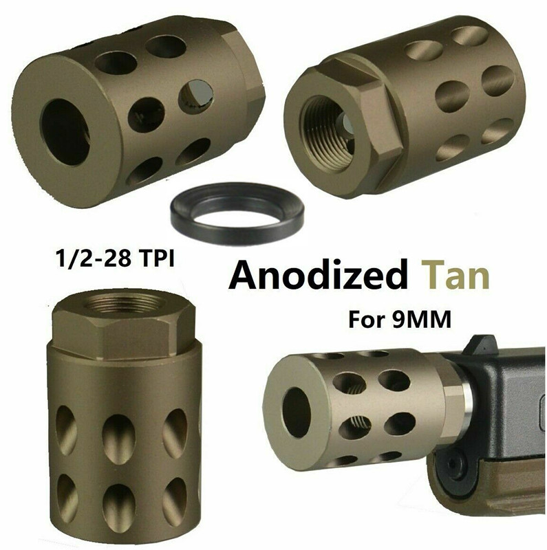 DB TAC Aluminum 1/2”×28 TPI Thread Muzzle Brake Compensator For 9mm Tan Color