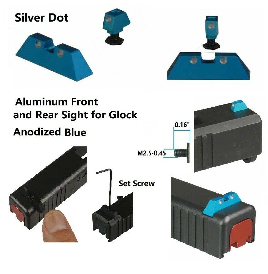 DB TAC Aluminum Blue Front and Rear Sight 6.5 mm Black Dot for GLOCK 17, 19, 22, 23, 24, 26, 27, 31, 34, 35