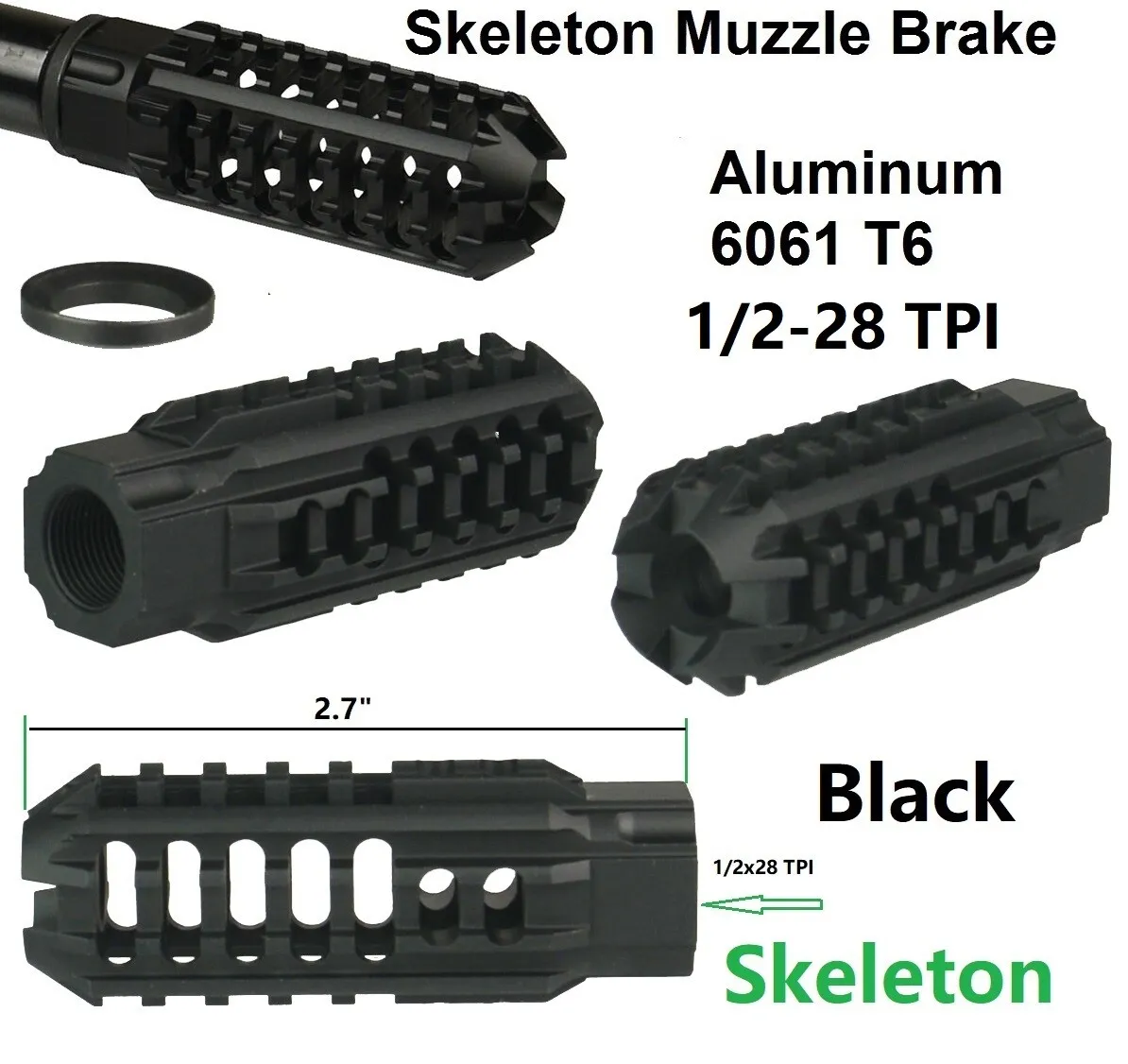 - Black Aluminum Skeleton Muzzle Brake Compensator