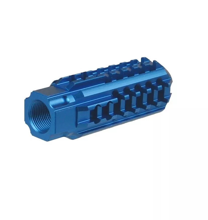 This Blue Aluminum Skeleton Muzzle Brake Compensator from DB TAC is designed to add a striking custom look while helping manage recoil on lightweight firearm builds.