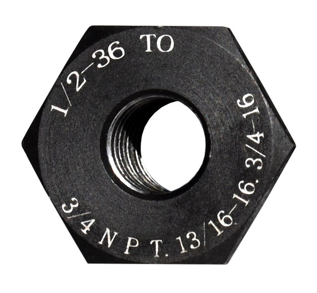 Converts 1/2″x36 RH external thread to multiple internal thread options:- 3/4 NPT