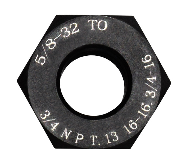 Converts 5/8″x32 RH external thread to multiple internal thread options:- 3/4 NPT