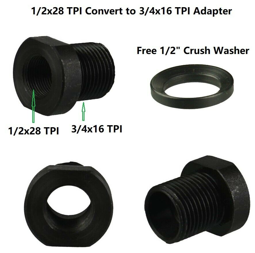 Converts 1/2″ x 28 thread to 3/4″ x 16 thread