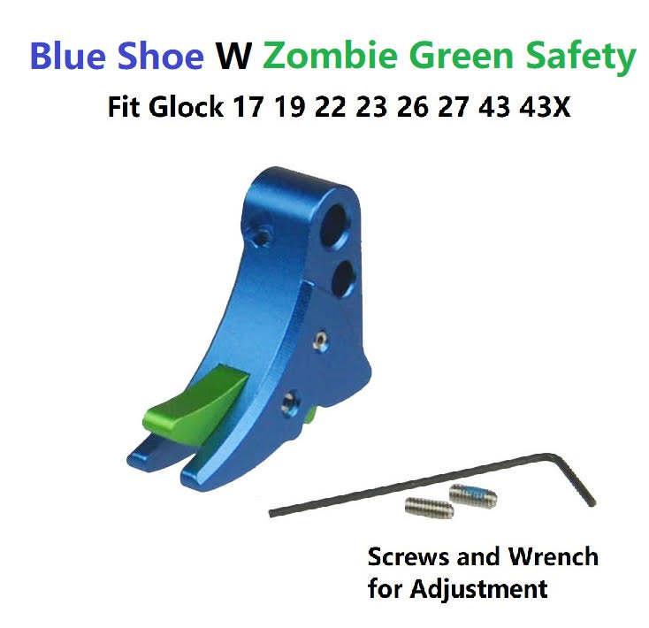 DB TAC Blue Color Trigger Shoe With Green Color Safety For All Glock GEN 3-4 & GEN 5 models, from sub-compacts to large frames