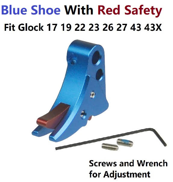 DB TAC Blue Color Trigger Shoe With Red Color Safety For All Glock GEN 3-4 & GEN 5 models, from sub-compacts to large frames
