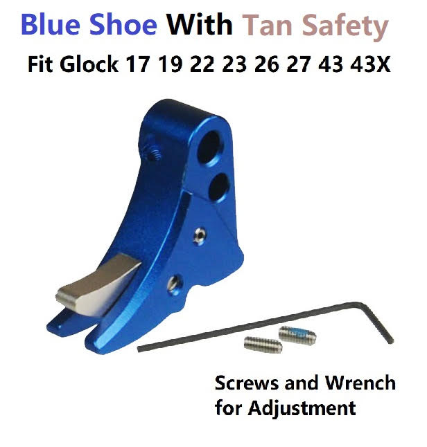 DB TAC Blue Color Trigger Shoe With Tan Color Safety For All Glock GEN 3-4 & GEN 5 models, from sub-compacts to large frames