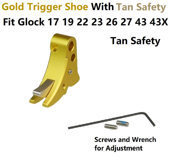 DB TAC Gold Color Trigger Shoe With Tan Color Safety For All Glock GEN 3-4 & GEN 5 models, from sub-compacts to large frames
