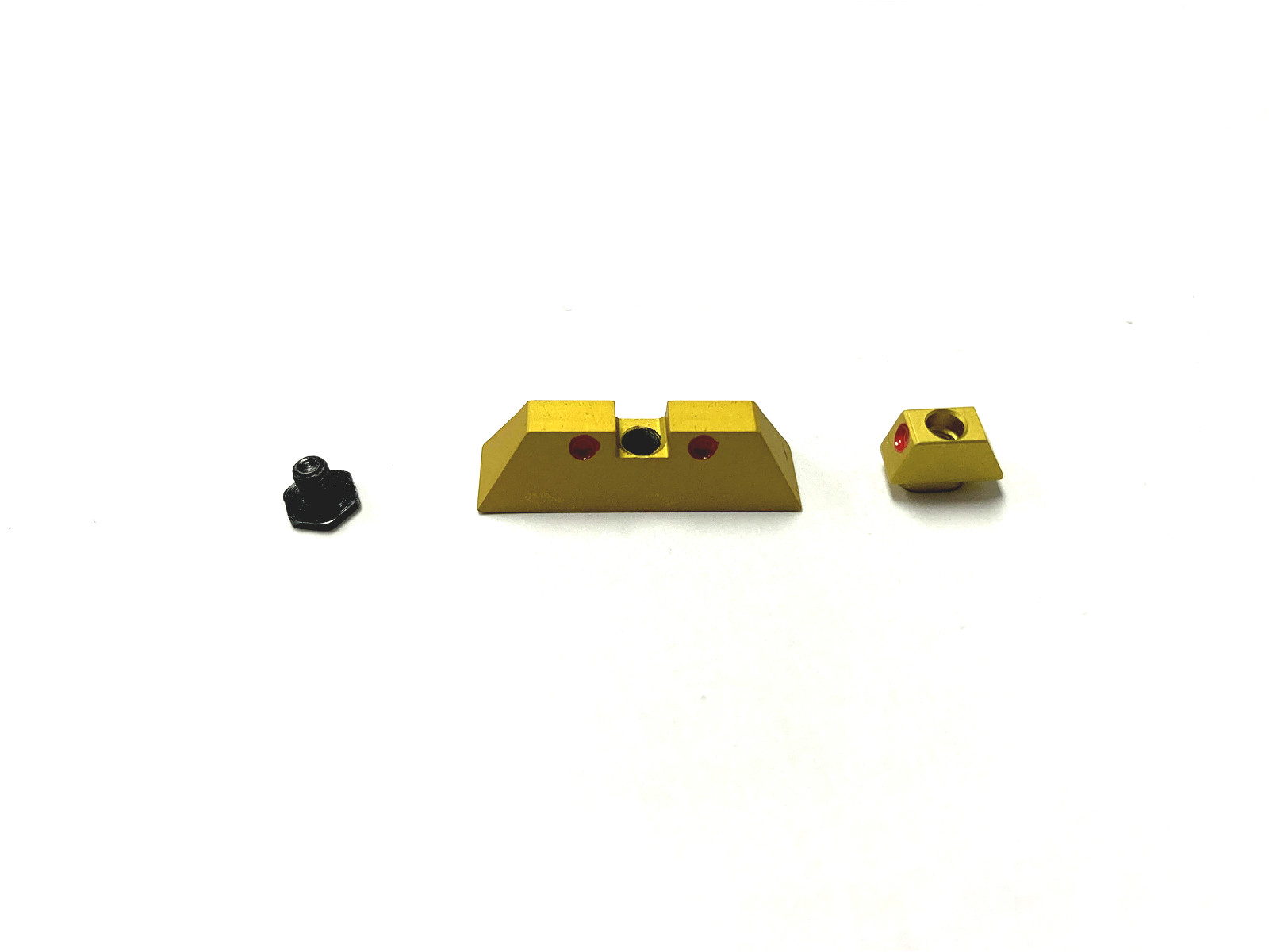 DB TAC Gold Narrow Style Aluminum Front and Rear Sight With Red Dot for GLOCK 42, 43, 43X Slim Slide