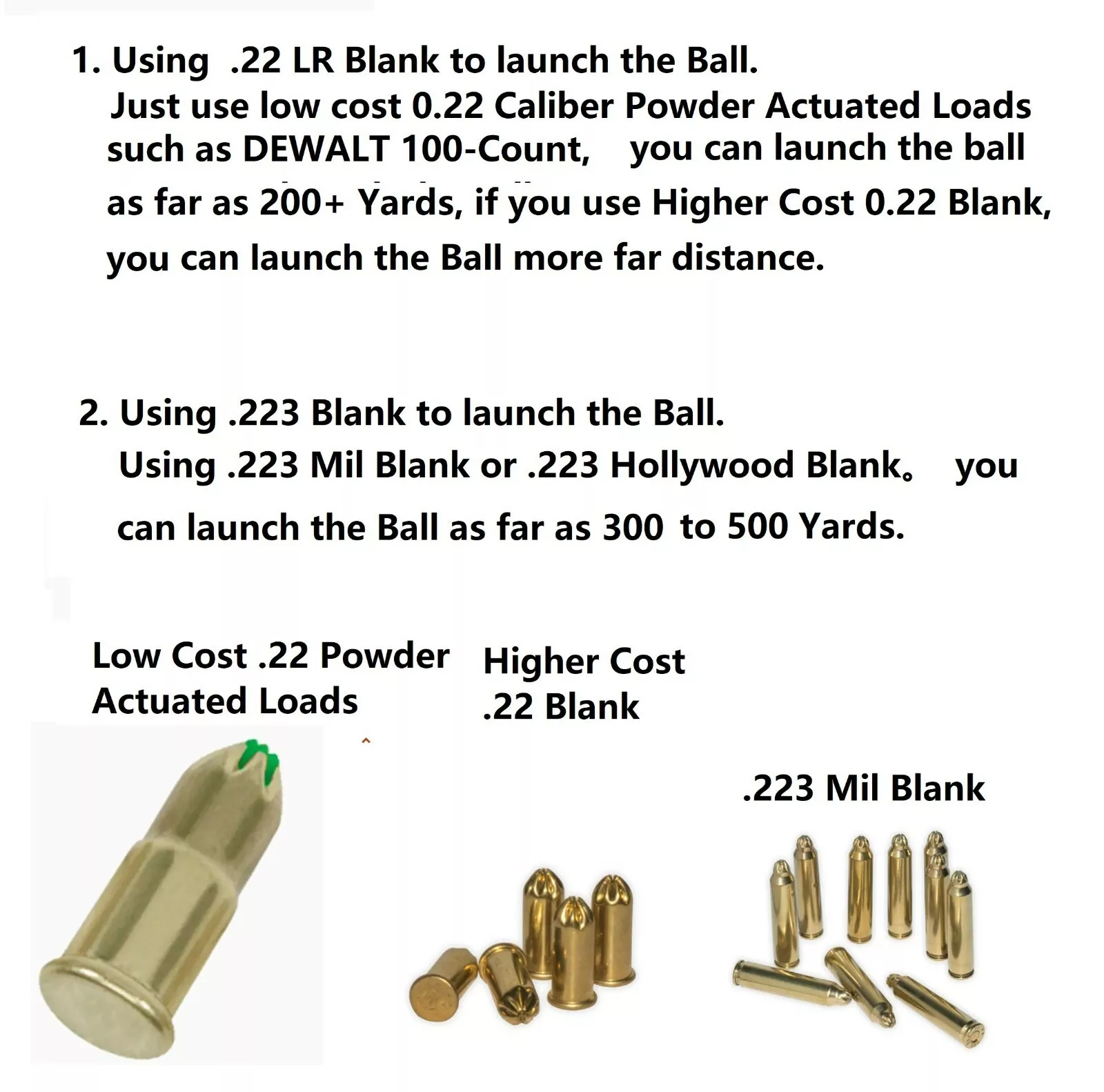 Before launch, put a golf ball into the tube and press it to the bottom with your thumb, so that the golf ball will propel by gas to as far as 200+ yards and much more.