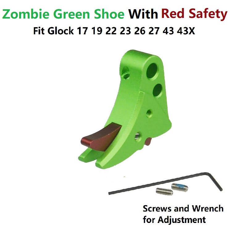 DB TAC Green Color Trigger Shoe With Red Color Safety For All Glock GEN 3-4 & GEN 5 models, from sub-compacts to large frames