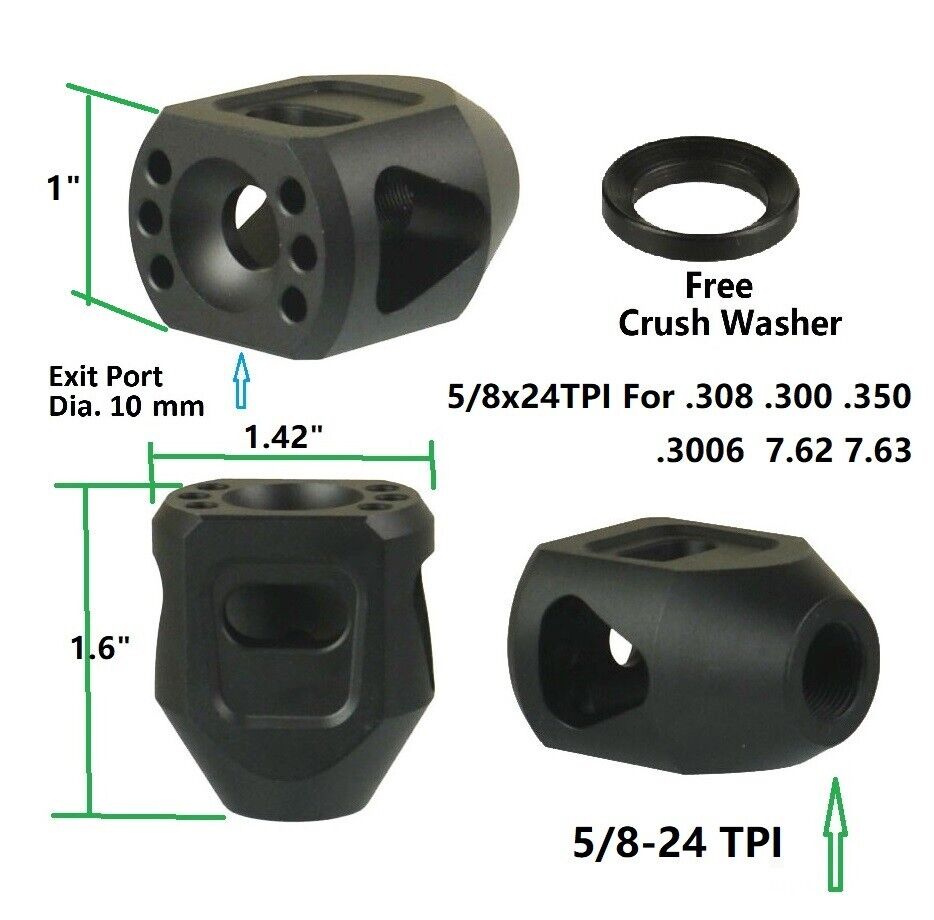 DB TAC Hard Aluminum 5/8×24 TPI Thread Muzzle Brake For .308/.30/.338 Caliber Anodized Black Color Low Concussion