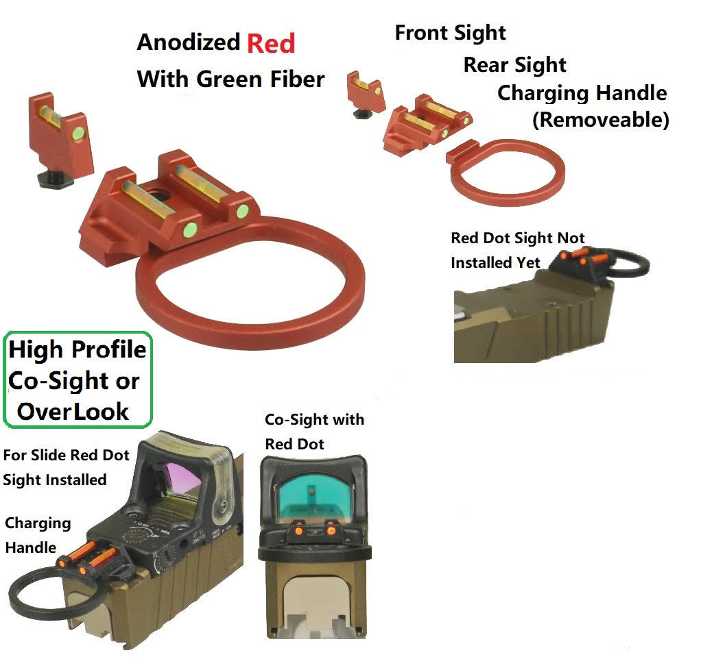 DB TAC High Profile 10 mm Aluminum Anodized Red Front And Rear Sight With Green Fiber Optic for GLOCK 17, 19, 22, 23, 24, 26, 27, 31, 34, 35, 42, 43, 43X