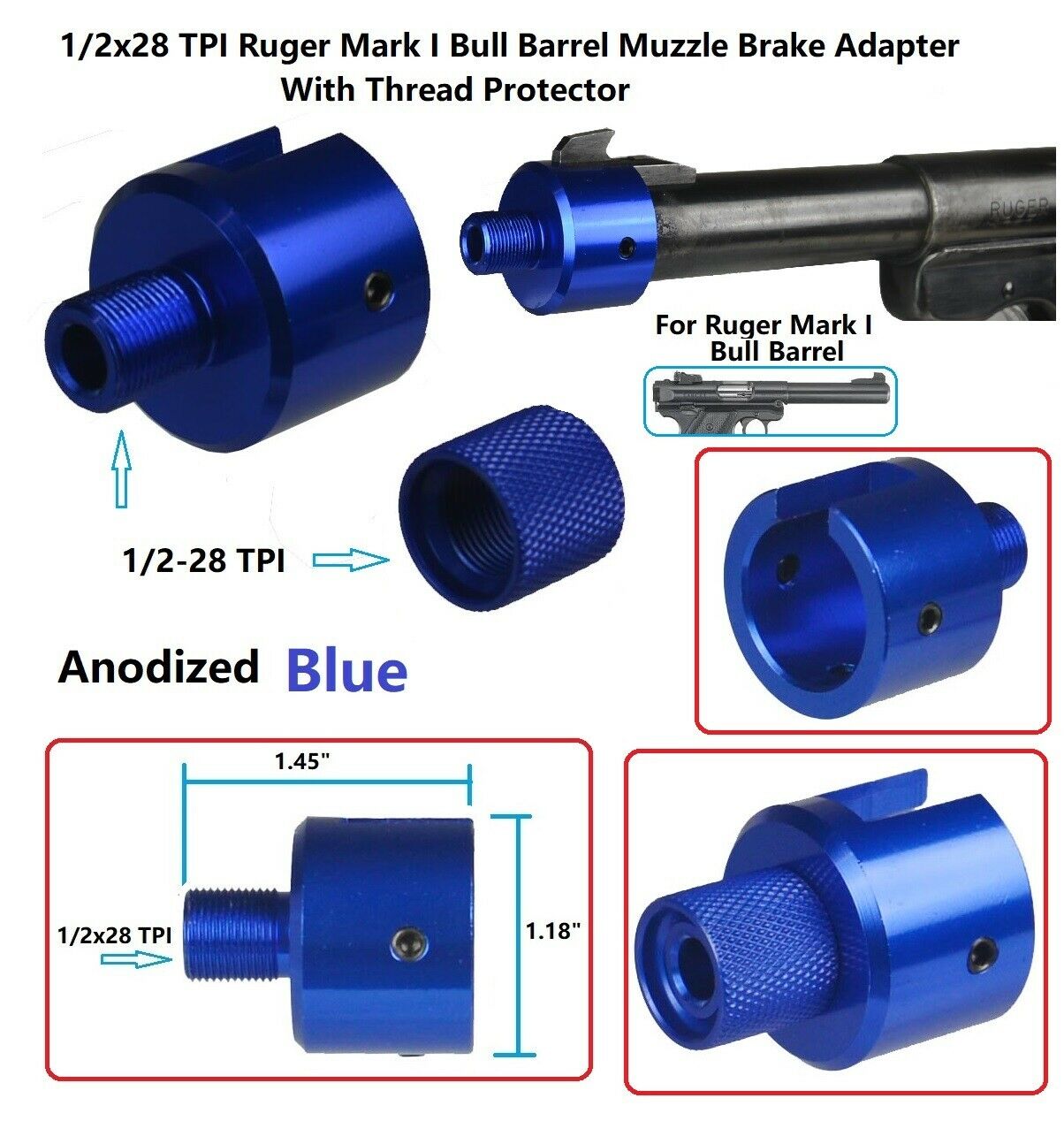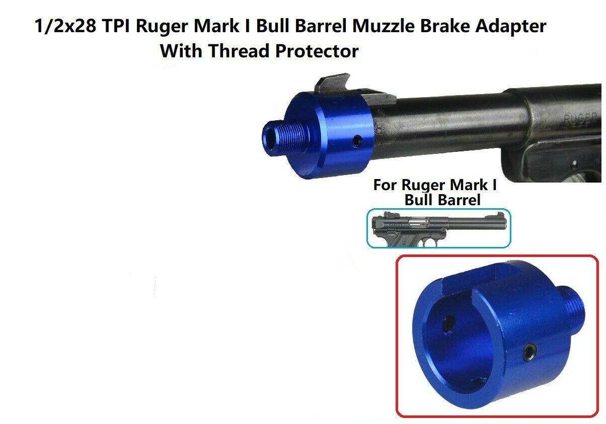 DB TAC 1/2×28 TPI Thread Muzzle Brake Adapter With Thread Protector For Ruger .22 Mark I Bull Barrel Blue Color