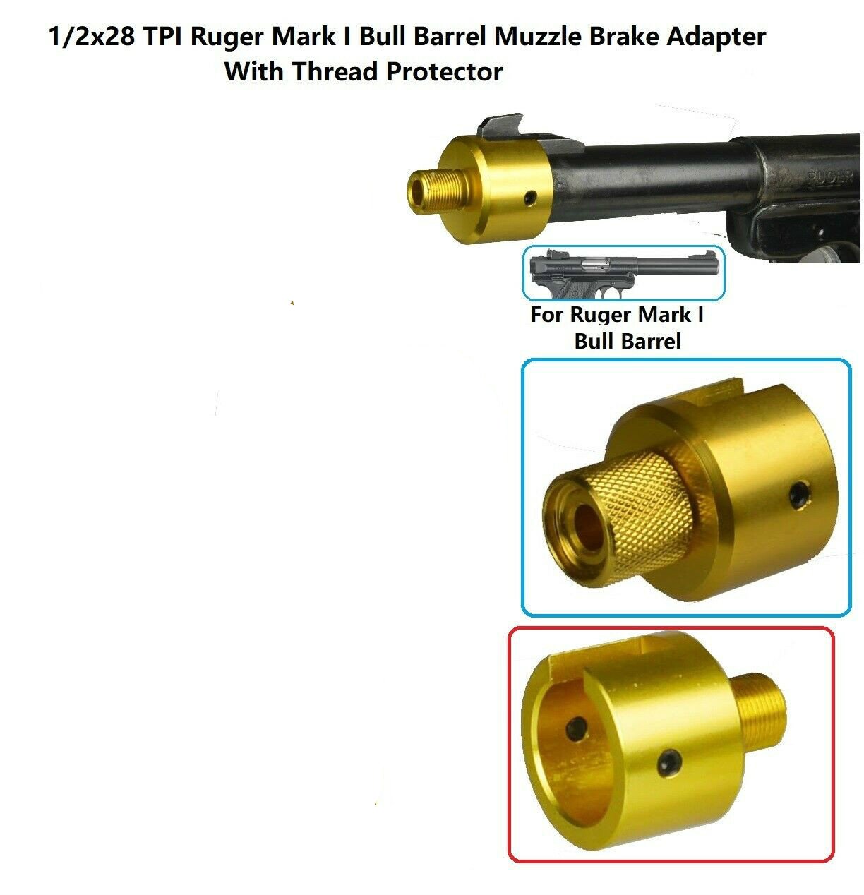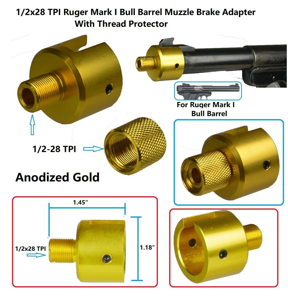 DB TAC 1/2×28 TPI Thread Muzzle Brake Adapter With Thread Protector For Ruger .22 Mark I Bull Barrel Gold Color