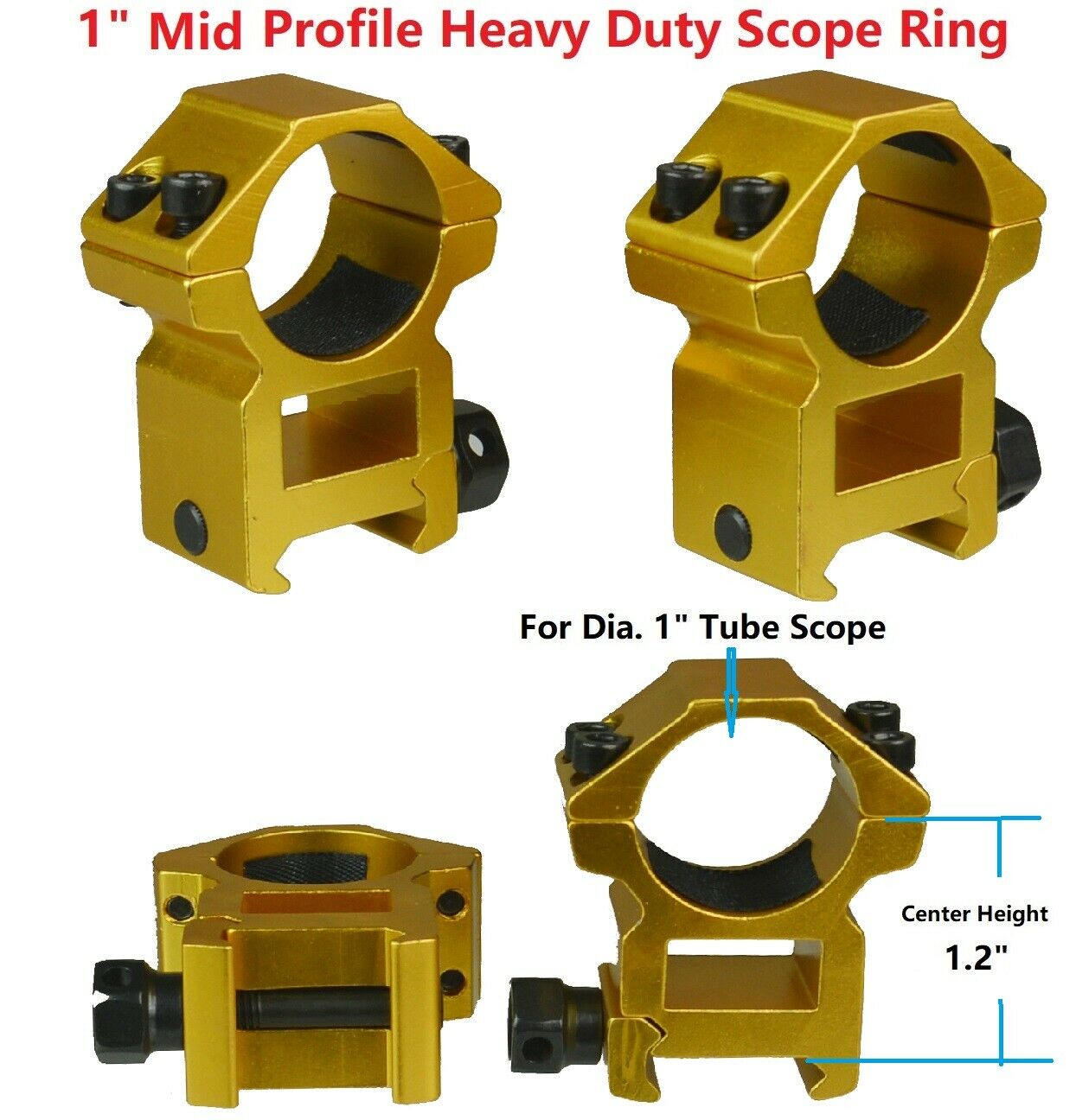 DB TAC 1 Inch Scope Rings 20mm Picainny/Weaver Rail, Anodized Gold Color, Height 1.2 Inch