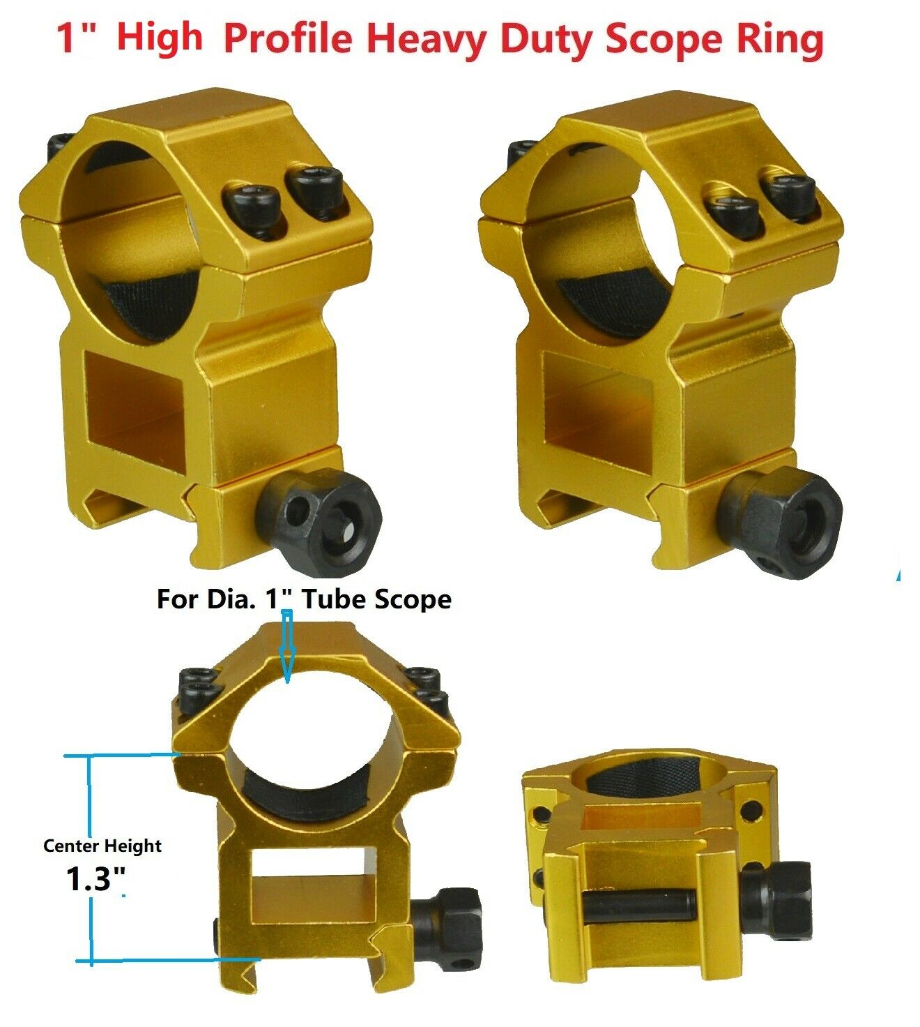 DB TAC 1 Inch Scope Rings 20mm Picainny/Weaver Rail, Anodized Gold Color, Height 1.3 Inch