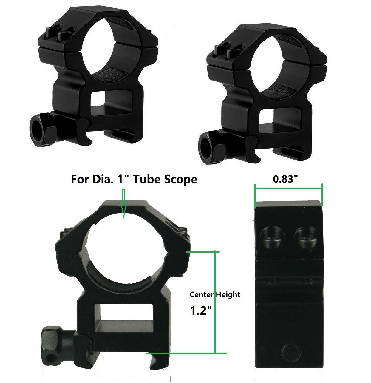 DB TAC 1 Pair 1” Dia 1.2 Inch Mid Profile Height Scope Rings Picainny/Weaver Mounting