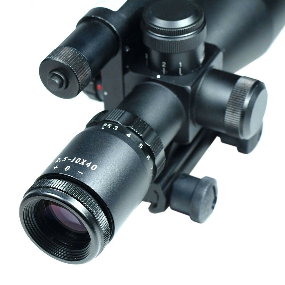 - One (1) 2.5-10X40 illuminated rifle scope With Red laser