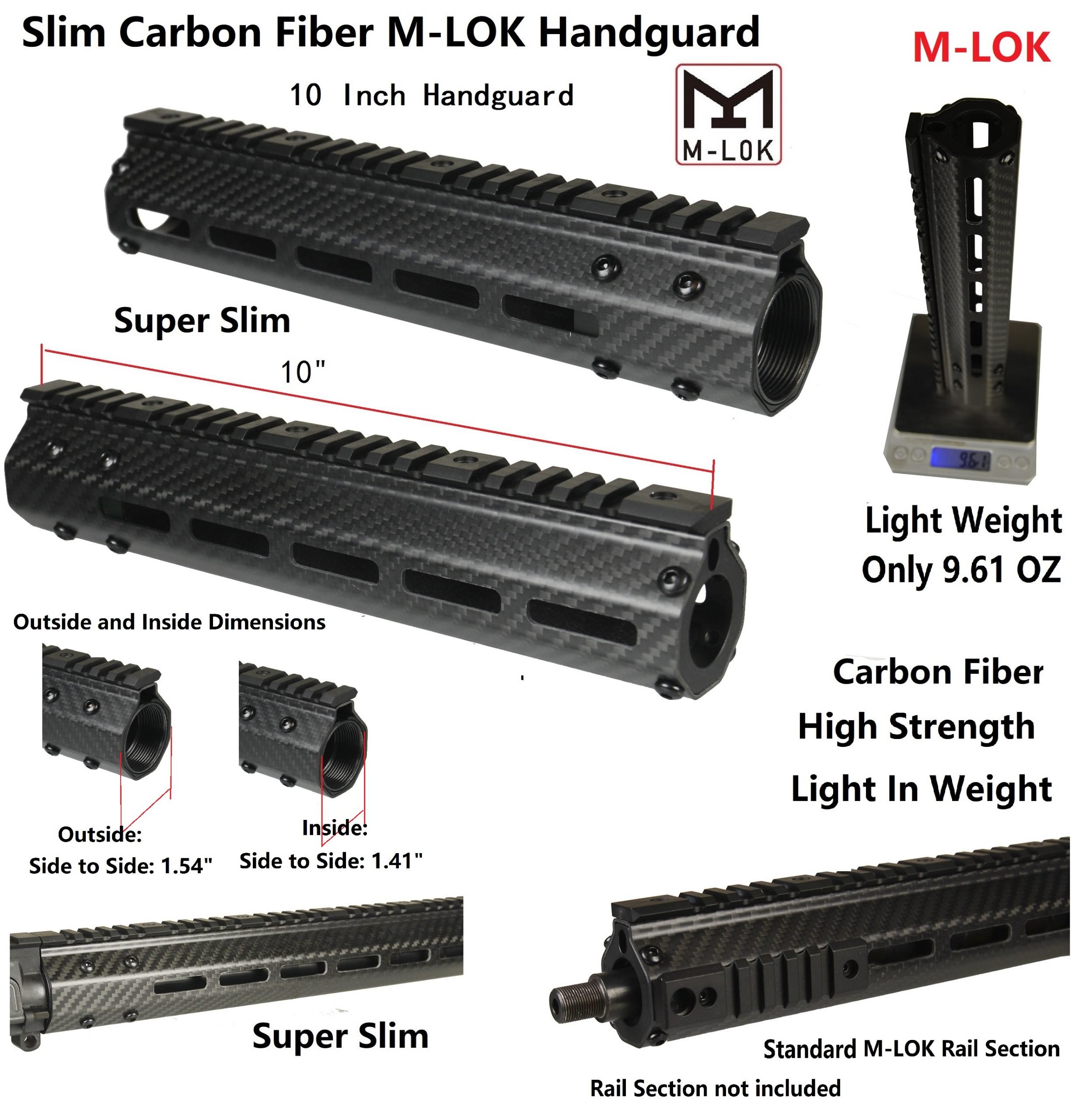 DB TAC .223/5.56 Carbon Fiber 10 Inch Free Float M-Lok Handguard Light Weight Picatinny/Weaver Rail