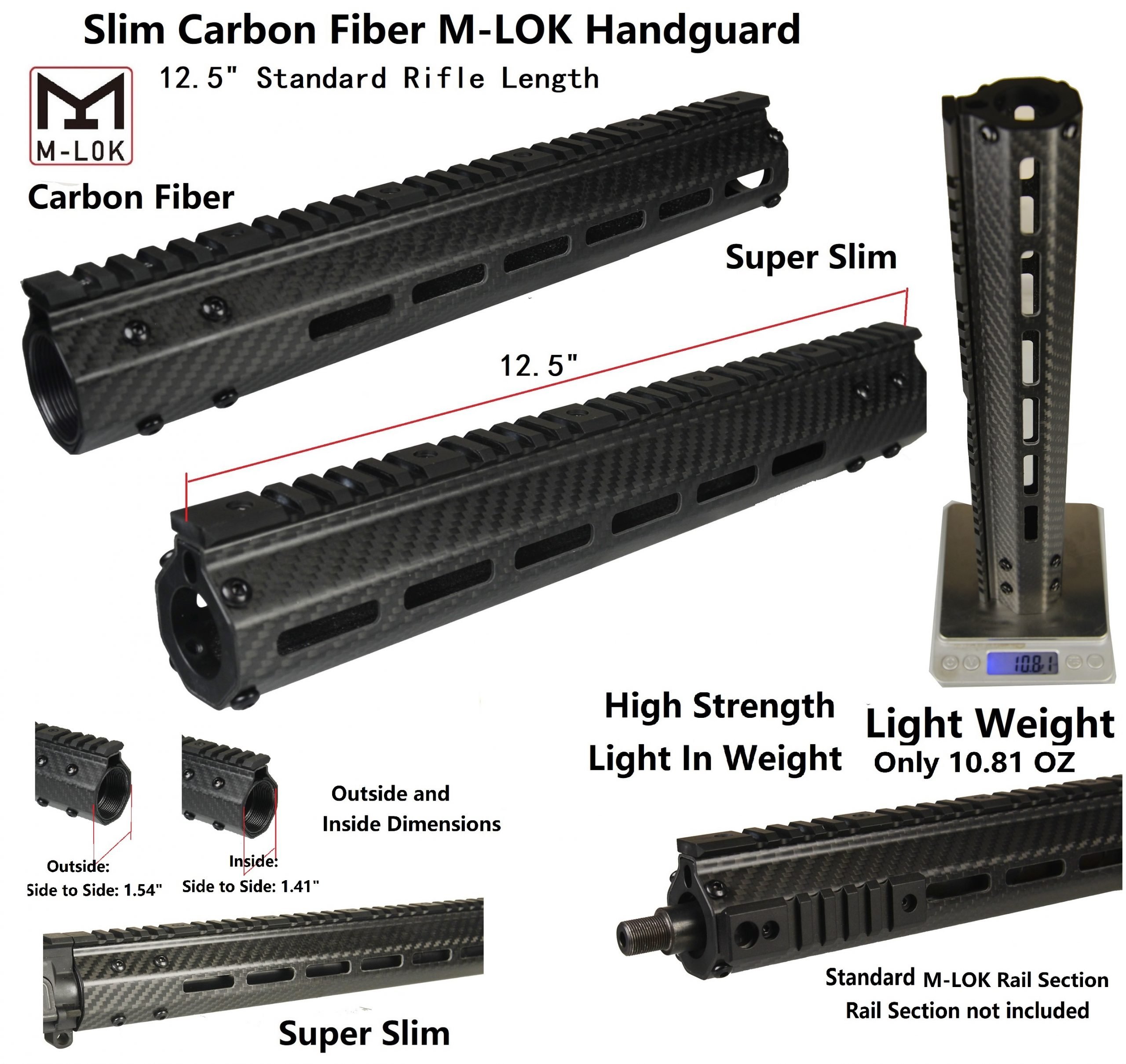 DB TAC .223/5.56 Carbon Fiber 12.5 Inch Free Float M-Lok Handguard Light Weight Picatinny/Weaver Rail