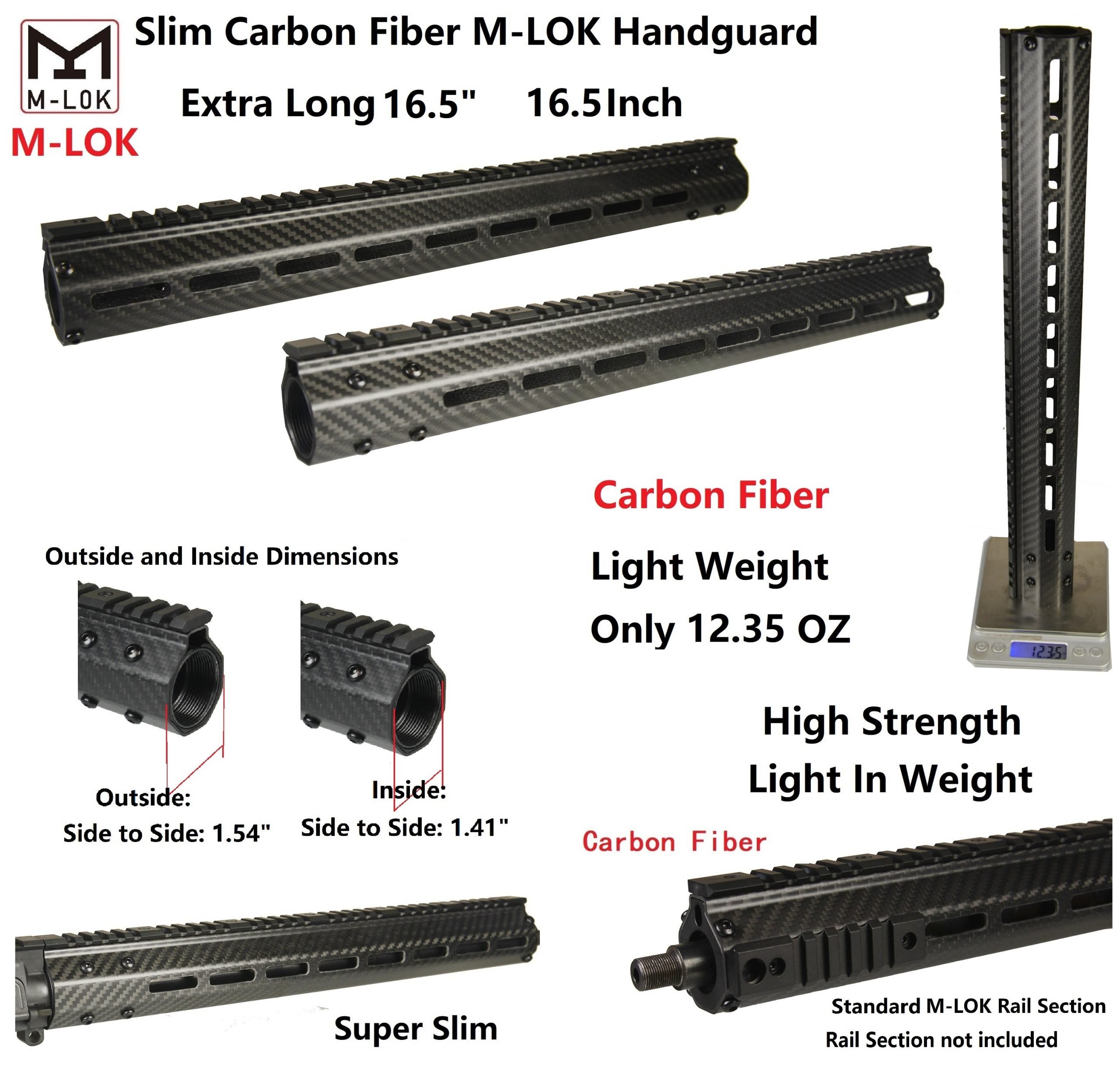 DB TAC .223/5.56 Carbon Fiber 16.25 Inch Free Float M-Lok Handguard Light Weight Picatinny/Weaver Rail