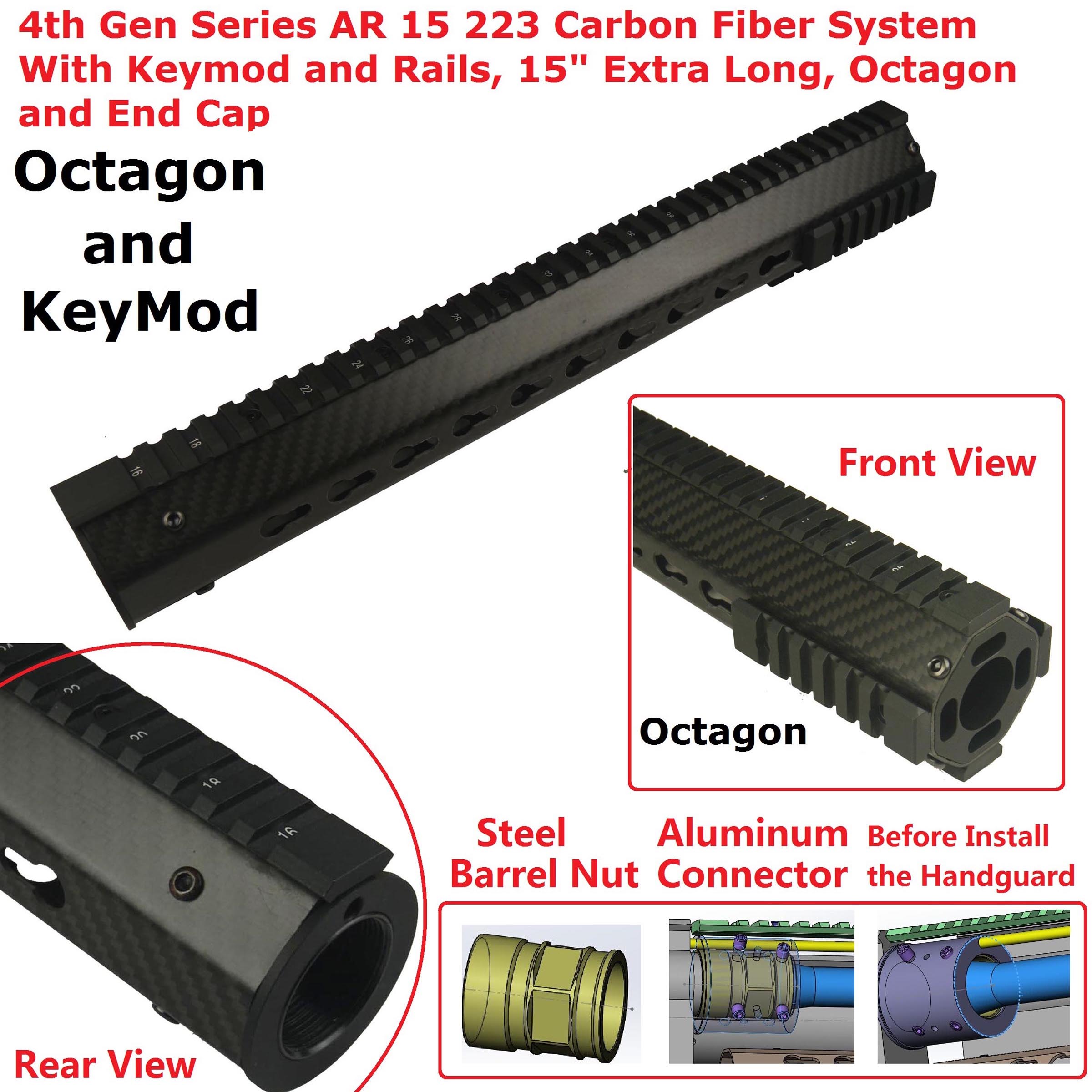 DB TAC .223/5.56 Octagon Carbon Fiber 15 Inch Free Float KeyMod Handguard Light Weight Picatinny/Weaver Rail
