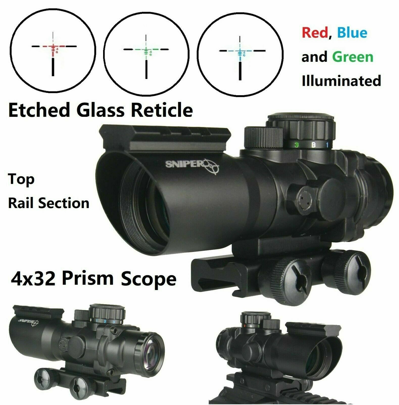 4X32 Prism Lens Etched Glass Compact Scope Red Blue and Green Illuminated