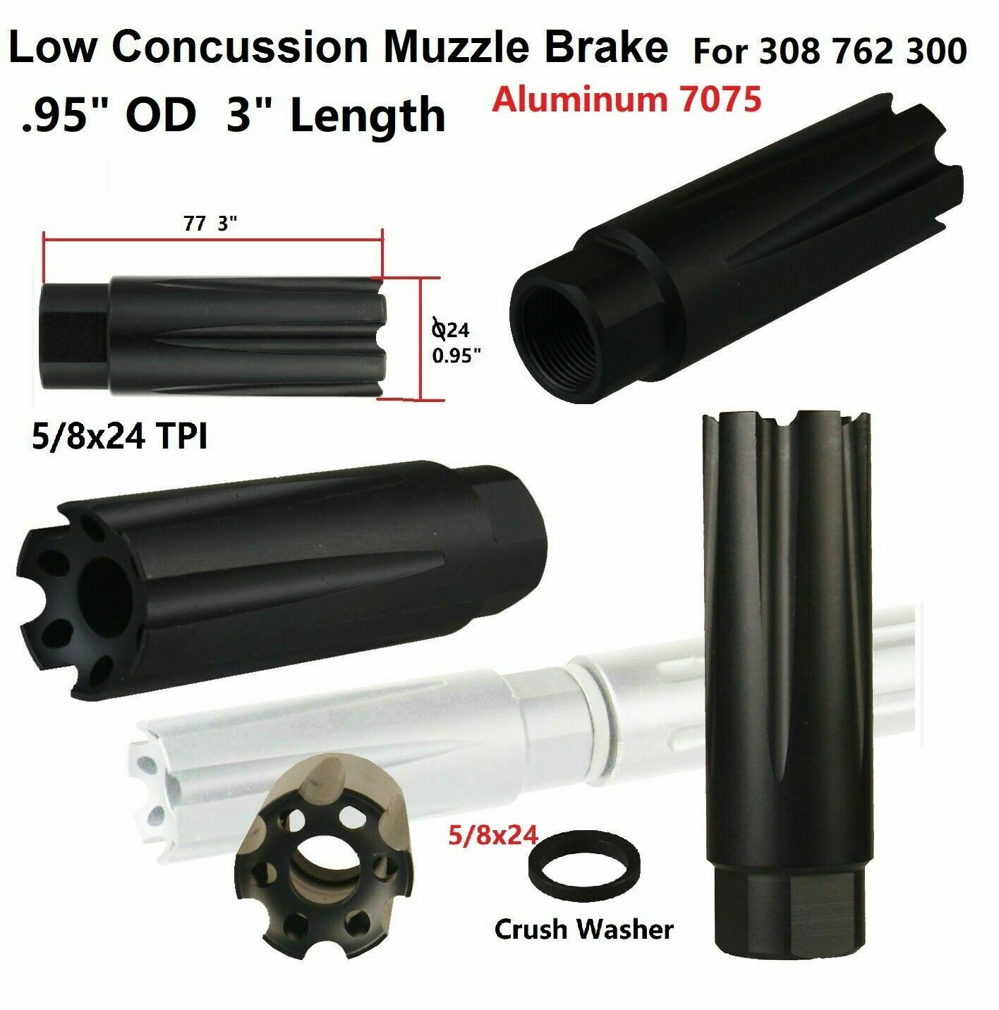 5/8”x24 Thread Low Concussion Muzzle Brake