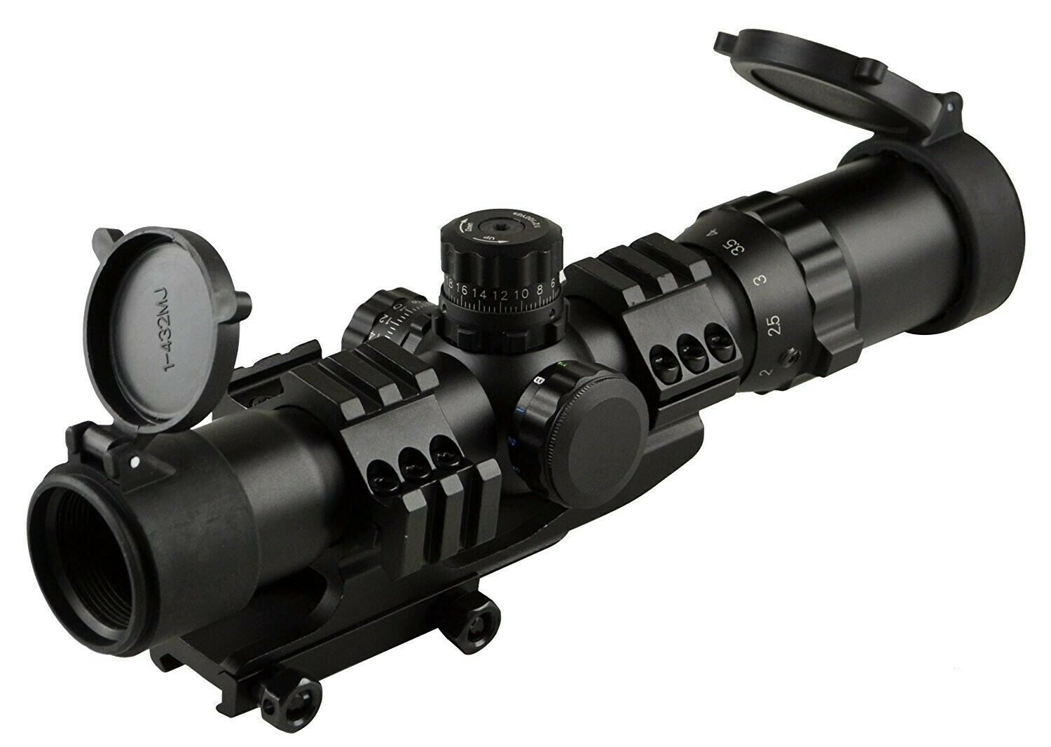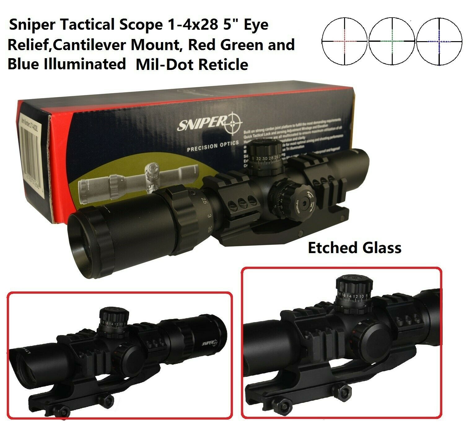1-4X28 5″ Eye Relief Cantilever Mount Red,Green,Blue Illuminated Etched Glass