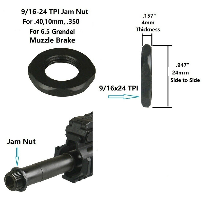 This threaded steel device is designed with precision machining and a durable black finish, making it a reliable accessory for long-term use. With a 9/16″x24 TPI thread, it is compatible with a wide range of applications, including .40, 10mm, and .350. The included jam nut ensures a secure and stable installation.