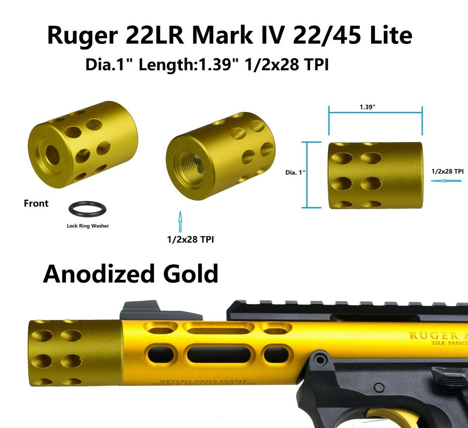 DB TAC Muzzle Brake Compensator Aluminum For .22 Ruger Mark IV 22/45 1/2×28 TPI Thread Gold Color