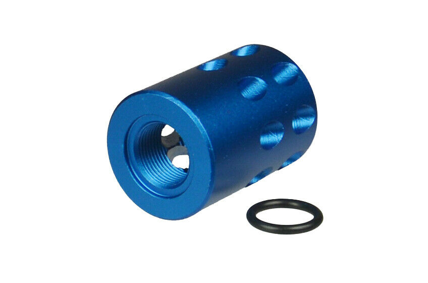 Constructed from high-grade aluminum with a blue anodized finish, this lightweight muzzle brake enhances control and reduces muzzle rise while maintaining a sleek, factory-style appearance.