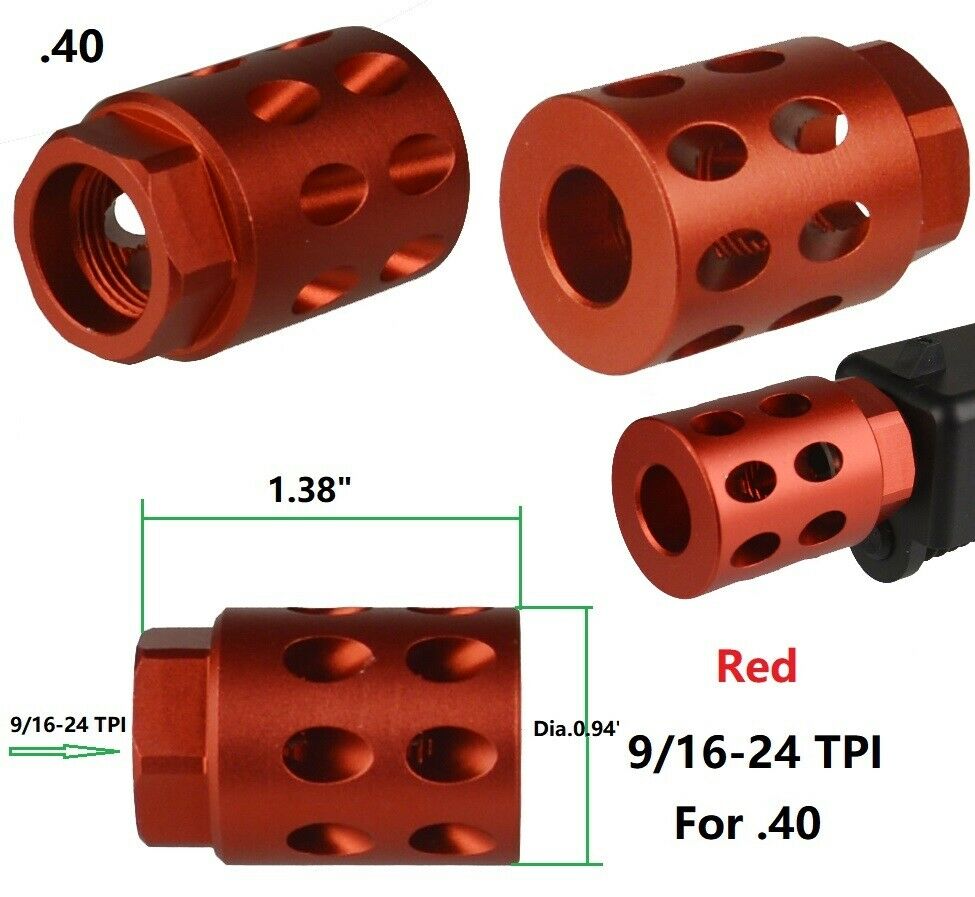 DB TAC Aluminum 9/16”x24 TPI Thread Muzzle Brake Compensator For .40 Red Color