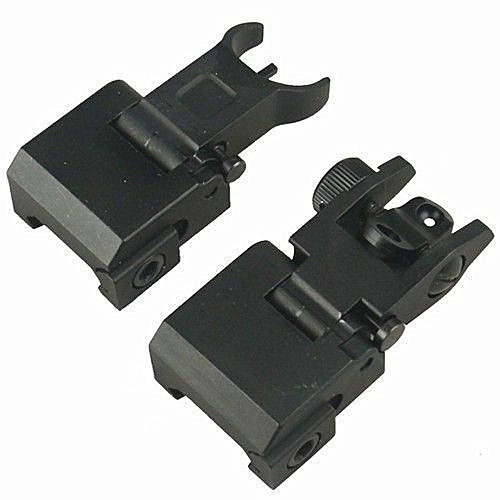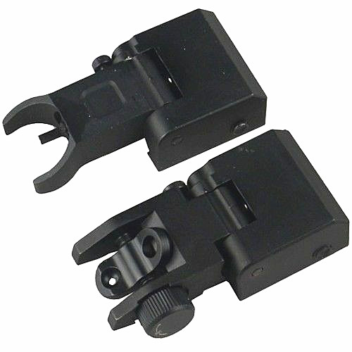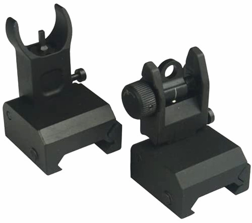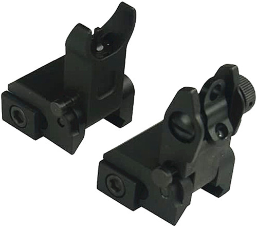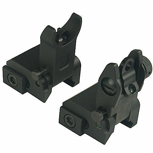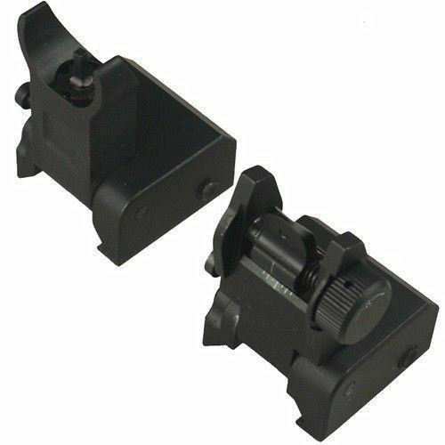 DB TAC Aluminum Black Color Picatinny/Weaver Rails Iron Sight BUIS Front and Rear Flip-Up Sight Set